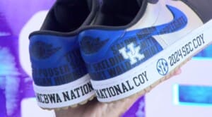 LEXINGTON, Ky. (ABC36 NEWS NOW)- Kentucky head men’s baseball coach Nick Mingione has some new swag on his feet after his players gifted him custom Nike shoes on Thursday. The gift was given after Mingione’s press conference where he unveiled new hitting coach Chase Slone. Evan Byers and several other players presented the kicks to Mingione in a custom box…